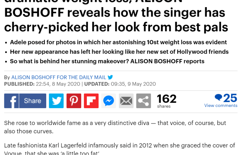 Enter the tabloids: We had all the usual suspects – E! News, Yahoo! and of course Daily Mail. And the focus is, as always, on the visual, on the weight loss, on her ‘BRAND NEW LOOK’. And we all lapped it up, even me. I sent the Instagram meme’s to my friends of her ‘glow-up’ and all that. And it’s scary how numb we’ve become to how damaging this kind of media is. It speaks volumes of the focus of the media when they appropriate the title of ‘Someone Like You’ to ‘Slim like you’ – a song which, by the way, has sold over 17 million copies. But yeah, let’s focus on her body.